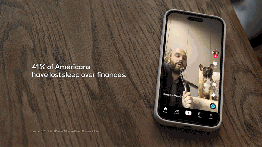 We knew this 'Hangover' style ending would leave people wanting more. So we made our dad his own TikTok and Instagram accounts where we posted his late night shenanigans. These platforms raised awareness around the idea of losing sleep due to finances in an engaging yet organic way. We boosted these posts for added reach.